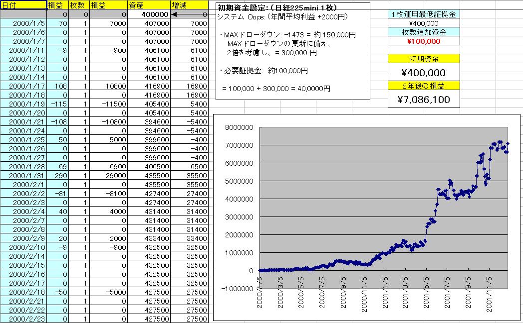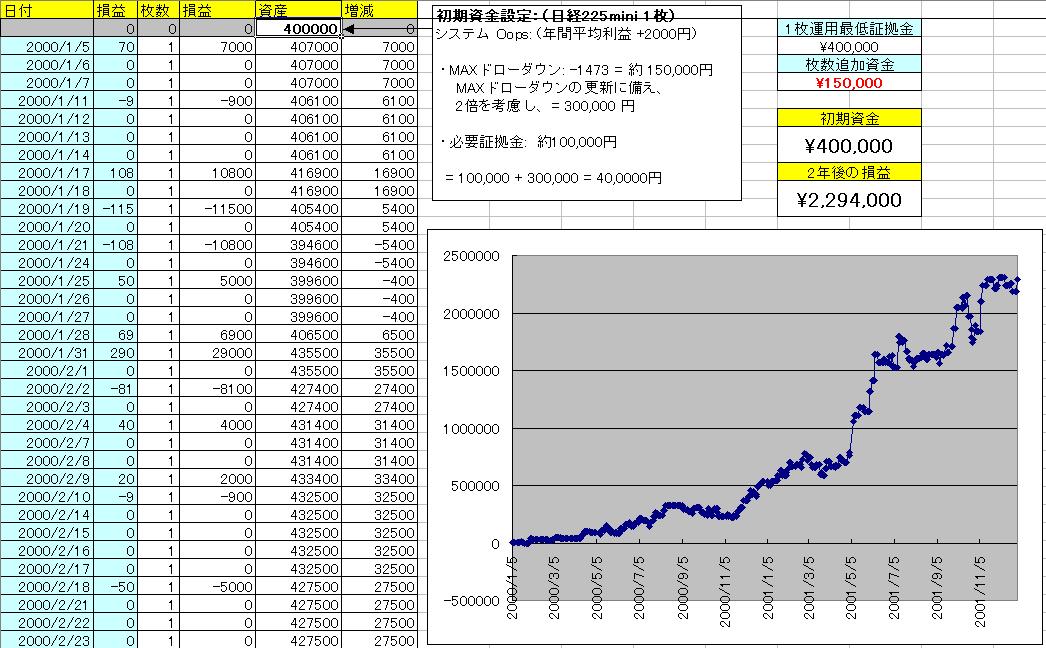 開始資金は40万円とし、最初は1枚の運用とします。